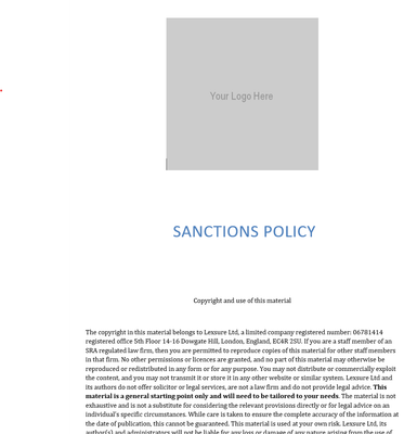 This draft sanctions policy is designed to ensure that you comply with applicable financial sanctions laws made under the UK sanctions regime. The template available here can easily be edited to suit your firm.